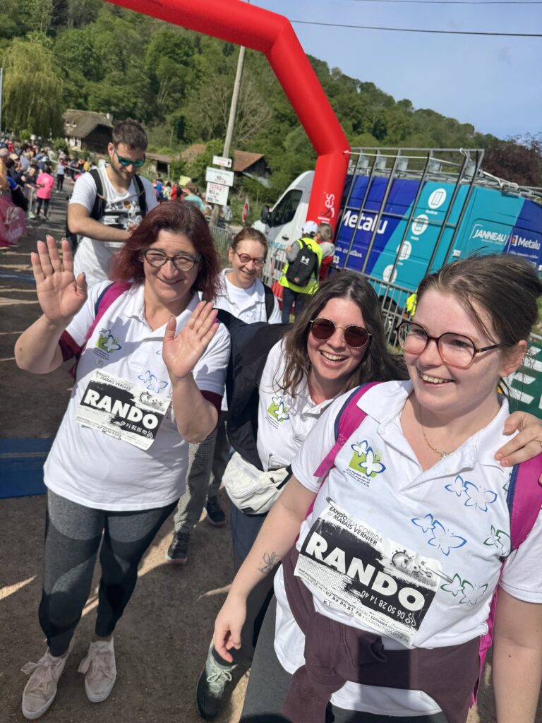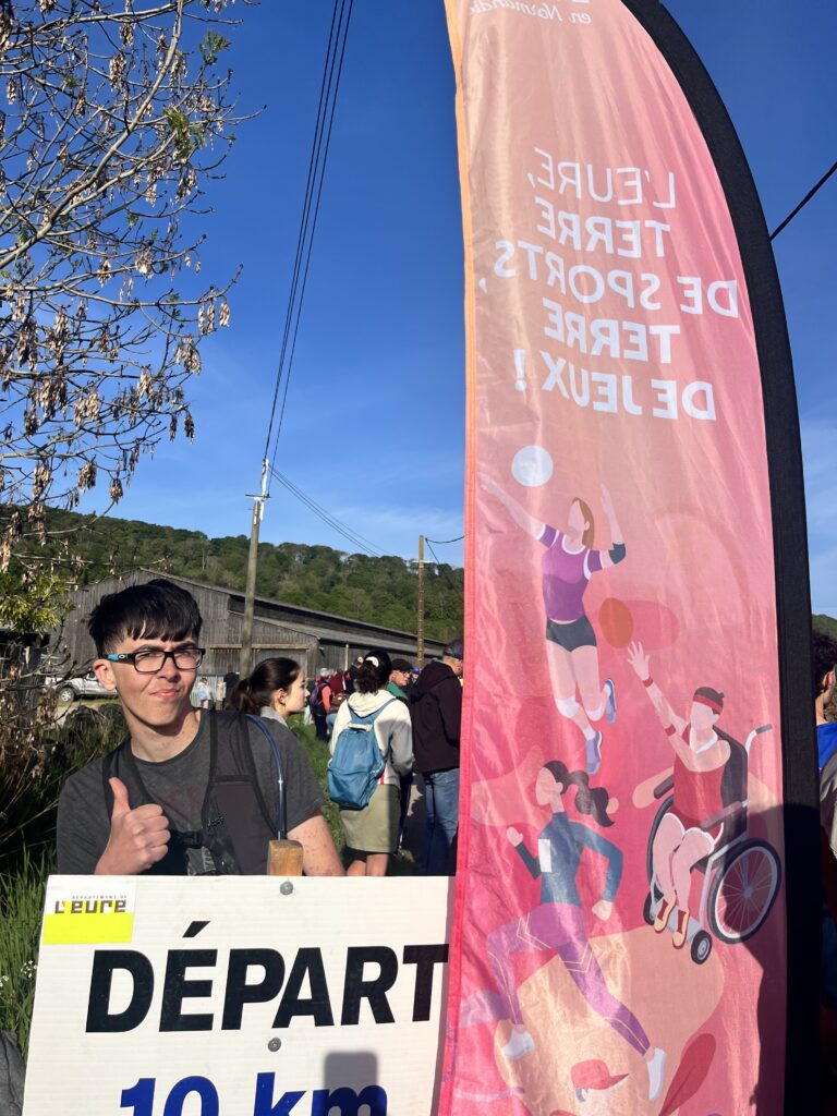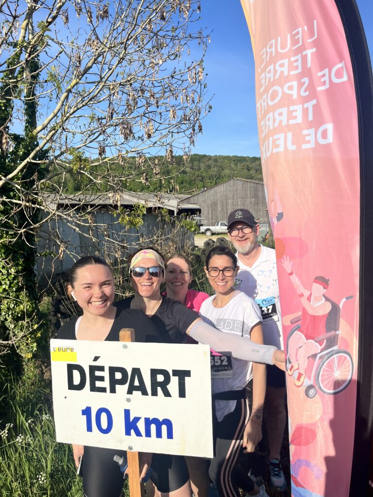 Les coureurs du Foyer La Licorne (Théo, Allan, Delphine, Marina, Angélique, Mélanie, ainsi que leur directeur M. Vautrin) étaient prêts à relever le défi des 10 km avec détermination 💪🏼
