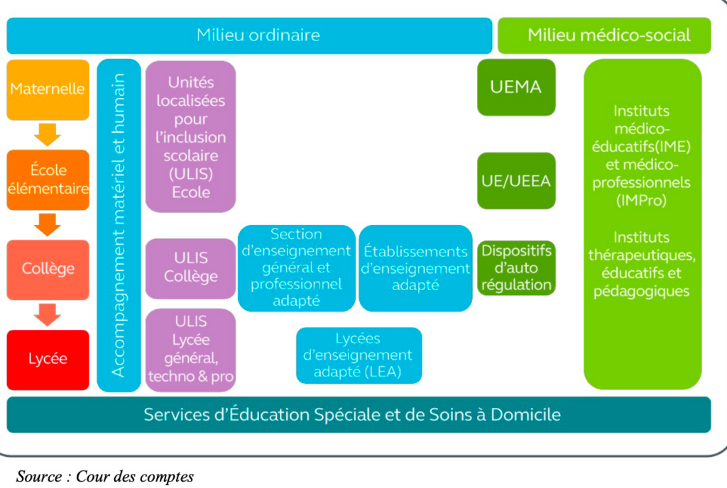 Les différents types de scolarisation possibles pour les enfants en situation de handicap.