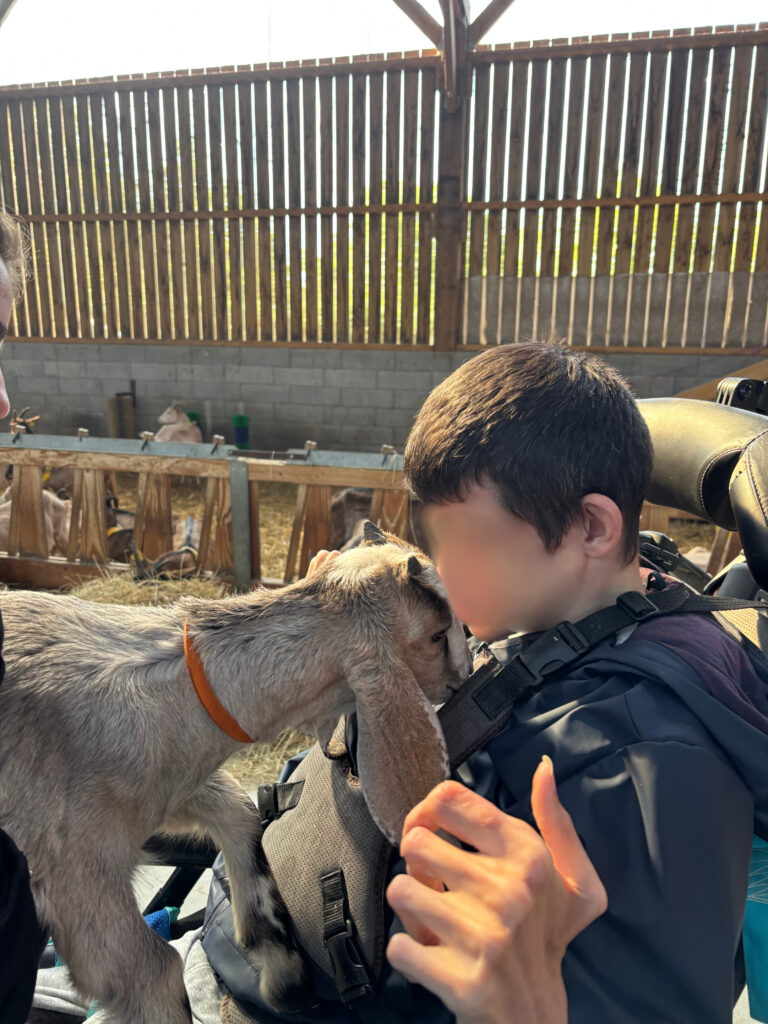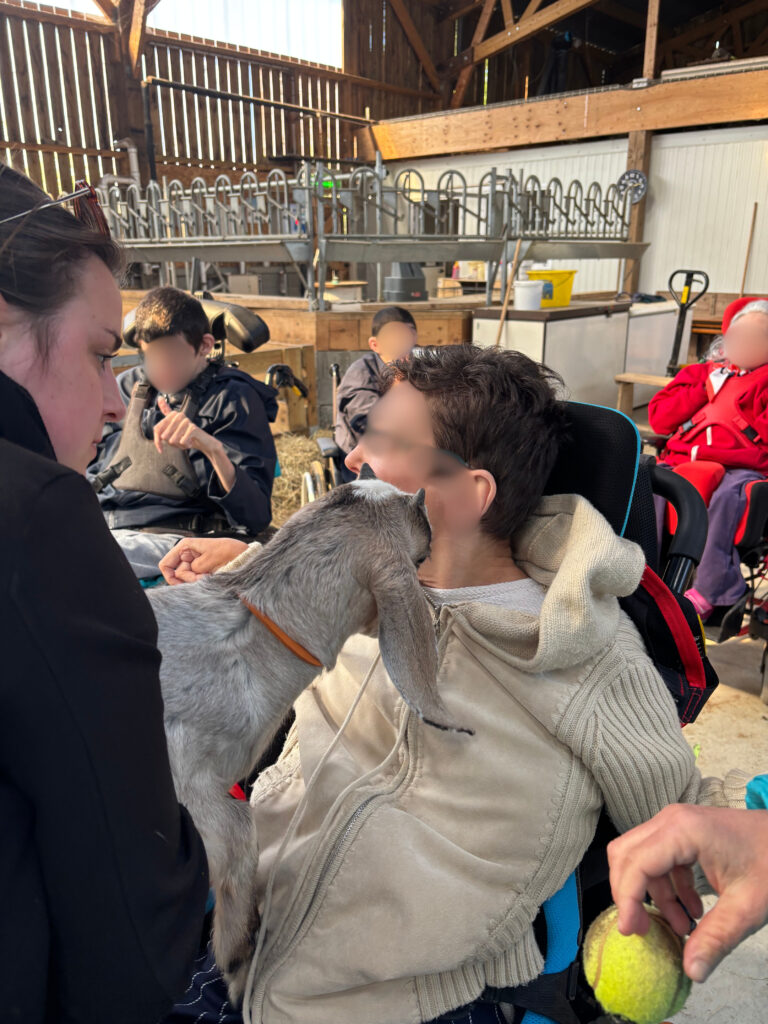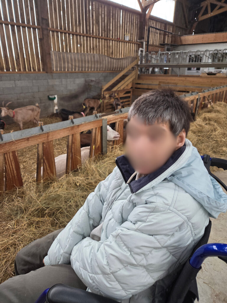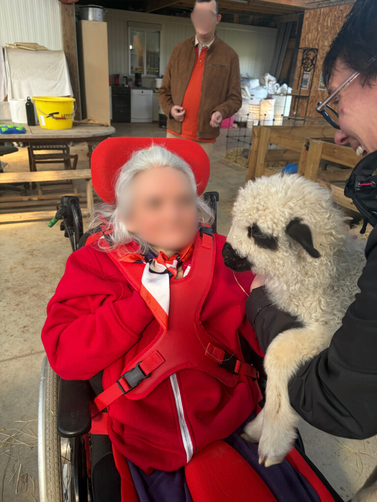 Il n’est pas rare que les résidents de la Maison d’Accueil Spécialisée soient accueillis à la chèvrerie des P’tits Loups !